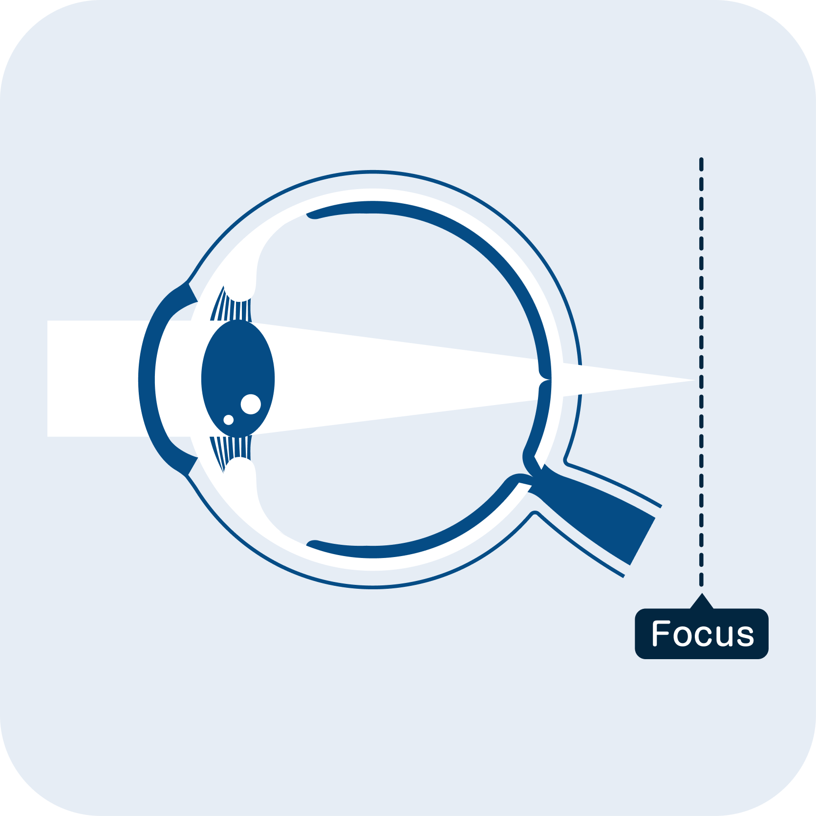 Un occhio emmetrope (senza difetti visivi), grazie al potere convergente di due strutture oculari, cornea e cristallino, focalizza tutte le immagini proveniente dal mondo esterno (sia vicine che lontane) a livello retinico, dove sono presenti le cellule visive.